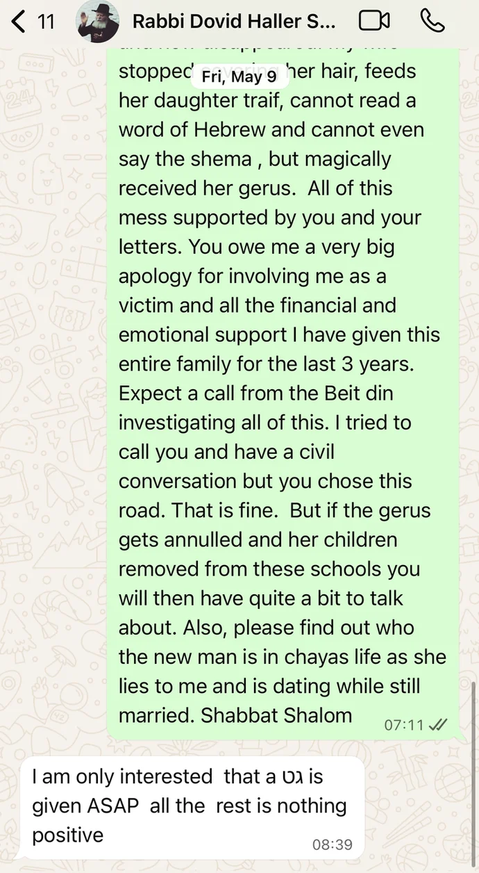 To an unsuspecting person, Jeffrey David would appear like any other religious Jew, proudly wearing a big Kippah and his tzizit hanging out. He frequents the Chabad House administered by Rabbi Dovid Haller for many years, donates food weekly for their public Shabbat Meals and regularly receives the “Levi” aliyah to the Torah. It’s a perfect scheme, why would anyone ever suspect that Jeffrey David is actually not Jewish? However, the truth is that not only should David not receive the “Levi” aliyah, he should not receive any aliyah at all, he’s not Jewish, he is a Lebanese Catholic. Rabbi Haller was given the benefit of the doubt and people refused to believe that a Chabad Rabbi would knowingly commit such a transgression of the Torah. However, when the Rabbi was confronted in a text message for writing letters on behalf of Jeffrey and the entire David Family to assist in admitting the non Jewish grandchildren into Orthodox Jewish schools (Yeshiva College and “Amana”), letters to assist family members to make Aliyah to Israel, Rabbi Dovid Haller did not deny any of the allegations. Below is that text message with the Rabbi’s very short reply.